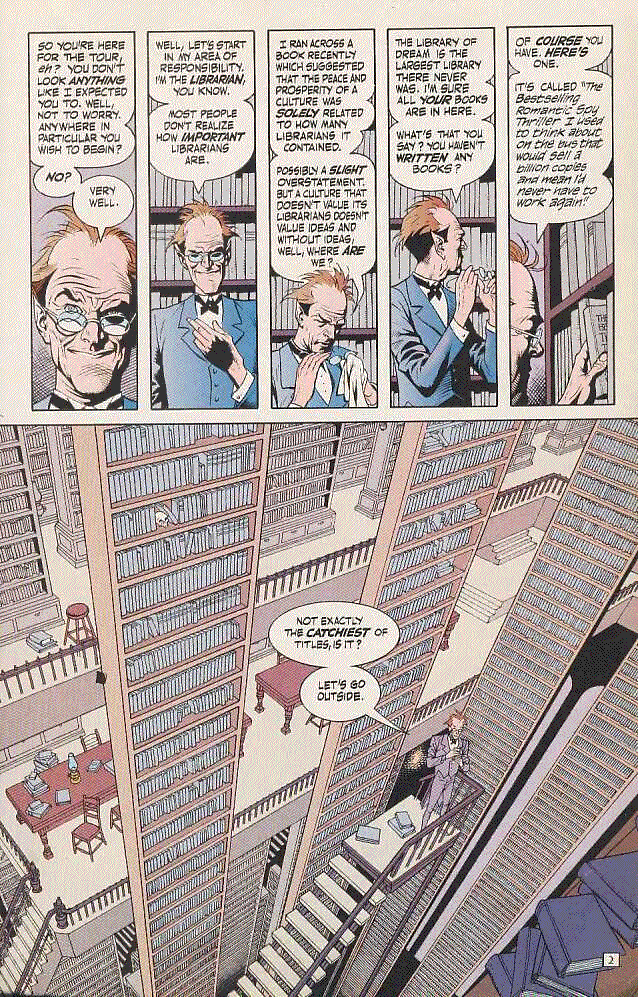 Fairday: I love the smell of books, especially old books that have a little mystery to them- no cover, with a musty, sweet scent- and I always like to visit the library. One of these days, I am going to find some ancient treasure tucked onto a shelf that no one else has noticed. I think I would like to go to Dream's library from the Sandman Series by Neil Gaiman. These books are for older readers, but the stories are amazing, and the illustrations are fantastic. Touring Dream's library would be an awesome experience, and it would be so cool to be showed around by Lucien, the Head Librarian!