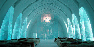 and its imagery of the North Pole. However, I also wanted to mention the amazingly creative ice hotels out there. I have never been to one, but they are so cool. Normally, I love to be warm. But, I would definitely like to visit a hotel like this and see it for myself. I think the pictures speak for themselves! Has anyone ever visited an ice hotel? ~ L