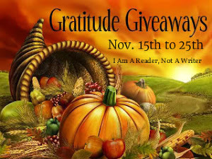 The Gratitude Giveaway Hop will run from November 15th-25th, so, join in the fun! This is a huge hop, and there are lots of delightful blogs participating, giving away all sorts of books and other fabulous prizes.