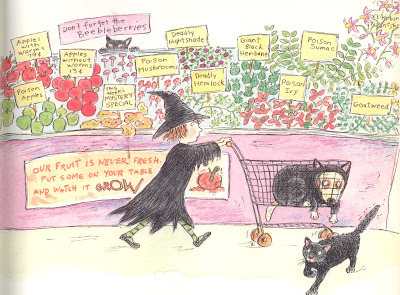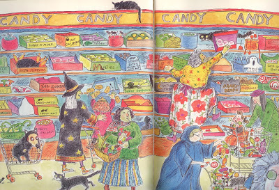 Well, this October has been a monstrous delight! The Halloween season brought with it thrills and chills, and we were excited to see all of the seasonal spirits and spooky stories haunting the book block. Margo has requested that I end this month of fright with one of her absolute favorite Halloween tales of terror. The Witches' Supermarket by Susan Meddaugh will take you on a fun adventure into a grocery store that you won't forget. Hold onto your brooms, because this book brings with it all of those wonderful, spooky feelings that we love to digest with lots of candy!