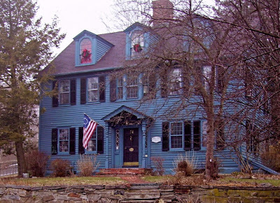 Fairday: Okay, this is my favorite picture to show people at Halloween. I can't find the article I clipped out about it- but here's the gist... Since I was a little girl, I have been obsessed with the blue house on Main Street in Newtown, CT. I just think it's just so darn spooky and lovely! My family used to drive by it during holiday travel. Main Street in Newtown is amazing during the holidays, especially Halloween. The old, fancy houses are all decked out for the annual Trick or Treat Street . Kids in costumes are everywhere. It's truly an event! Unfortunately, Halloween around here has been canceled for the past two years. So, to resurrect a little scare- Here's what I know about the blue house...
