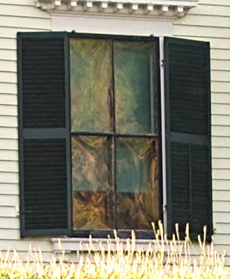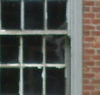 The story goes something like this... During the civil war a procession of starving soldiers was walking down main street and smelled baking bread. The hungry men broke into the house, startling the family. They then chased the father up and down the road, eventually killing him in the front yard.I took this photo because I wanted to have a picture of the blue house. When I downloaded it, I couldn't believe my eyes! WHAT in the world is happening in there??? I would love to hear what you guys think!