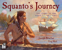 is one of the best picture books I have read about Thanksgiving and the settlers. The author focuses on Native Americans in his writing, and I love the authenticity he brings to his stories. Learning about the first Thanksgiving from Squanto’s point of view was different than anything I have ever heard about the event. Seeing through the eyes of a Native American at that time gave me a whole new perspective on the events that took place and the tradition that has become so important to our country. This book is touching and honest. The illustrations add a lot to the experience. This is a picture book that will get you thinking! ~ L