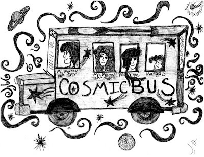 A star is born, we will say, then we guide you on your way. From the heavens, passed along, fly the colors of our song. You share our looks and our name. We hope for you to win the game. We hand you tools and point the way; teach you lessons every day. On this fleeting ride with us, you won't miss the cosmic bus. We hold you deep in our hearts, and wish for you the leading parts.