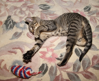 Lucy was found under a truck wheel in a grocery store parking lot when she was 8 weeks old. She was taken in by loving hands, and has basically won kitty lotto : )