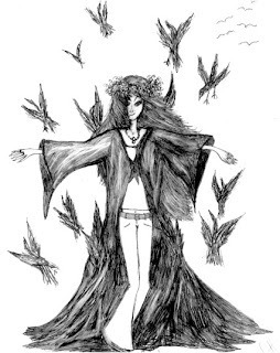 In one fell swoop, the crows lifted from the trees. They began to merge with one another, becoming a mass of swirling black feathers. As the cluster of winged birds moved closer to the ground, a figure began to take shape. The shadowy form of a woman emerged out of the melding murder of crows. The witch landed gracefully near the sleeping child. She was thin and dark, wearing a billowing gray cloak. Her vibrantly yellow eyes had an intensity that could shake even the most powerful of kings. She moved silently towards the boy, and he did not wake. Reaching down with slender arms, she lifted up his small body, then launched herself into the night sky. A thousand crows moved through the air, their wings pounding and rushing madly as they flew over the old graveyard on top of the hill.