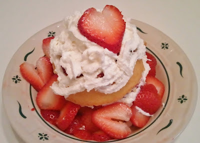 Find a bowl of some sort and walk out to Pru's gardenTry not to eat all of the fresh strawberries before getting back to the kitchen Marvel at the delectability of the red berries while rinsing them in the sinkThinly slice the juicy berries and then sprinkle on a little sugar Let them sit and soak in the love ♥Have bowl ready with a sliced shortcake biscuit, split in 1/2Pour a little drizzle of milk or cream over the dry biscuitSpoon amazing strawberry goop onto the soggy biscuit bottomAdd one scoop of all natural vanilla bean ice creamSpoon on some more awesome strawberry goopPut the top of the biscuit back onFinish with a dollop of whipped creamServe to smiling faces : ) **Delicious Shortcake Recipe by Patrick Morrow **Fabulous Summer Strawberries by Pru Morrow