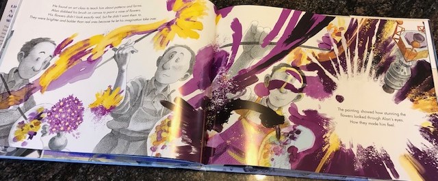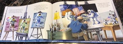 The True Story of Alan Bean: The Astronaut Who Painted the Moon is written by Dean Robbins and Illustrated by Sean Rubin. It tells the story of Alan as a boy, how he thought things looked, and his dream of becoming a pilot one day. When grew up and became a pilot, he also took painting classes. It was interesting to learn that he painted what he saw and let his imagination take over.