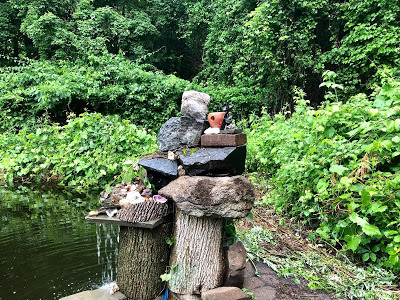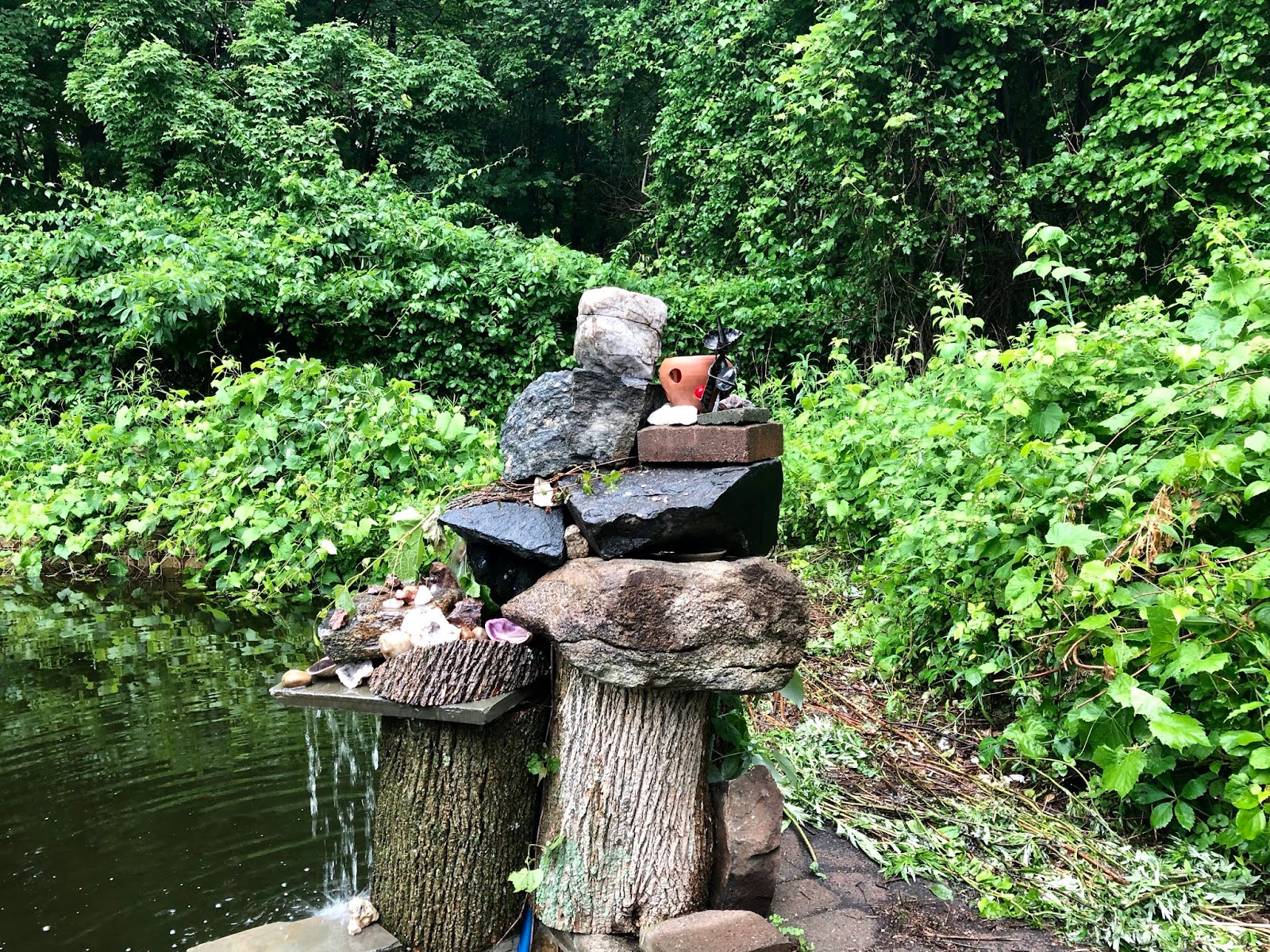 Sir Luckless found fortune by taking a dip. You may feel young if you have a sip. Drop in a penny, make a wish, poke around with bubble-eyed fish. Babbling drips of spritzing spray sparkle and flow in water play. Center pond or city street—nice spot for a meet and greet.