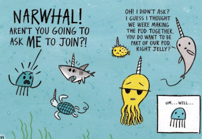 My little sister, Margo, loves unicorns and couldn’t resist the narwhal on the cover of a book we spotted at the library. Narwhals are the unicorns of the sea after all. We were in for a real treat, especially since this is a beginning graphic novel—a different format for Margo, but one she fell in love with.