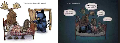 I had no idea that Bruce was the star of a picture book series. In his first book, Bruce, a grumpy bear, accidentally becomes the mother of baby chicks. That’s what happens when a bear loves eggs and those eggs actually hatch before he can cook them. Let’s just say that Bruce tried everything he could NOT be the mother of the chicks. But—nothing he did worked, and he tried some funny things. He was a reluctant mom for sure.