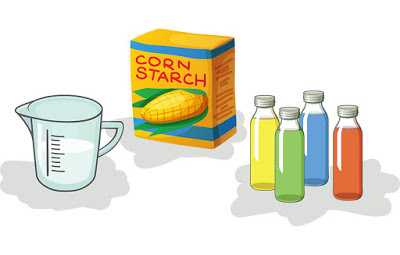 2 cups cornstarch1 cup water1-2 drops food coloring (optional)Mix in a bowl. Add water to cornstarch sl-ow-ly! (easier to mix)