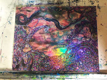 Spring has sprung! Nature's colors are popping everywhere, and it's glorious to behold. I've recently finished a new painting, and I took a deeper peep at the colors on my street. The ethereal realm is eternally close at hand, and it's lovely to soak it all in. Here's a behind the scenes look at Spiritscape plus the latest session of Microscopic Modern Art: "Spring Bouquet"