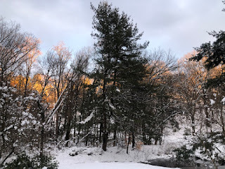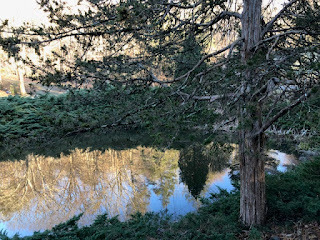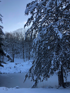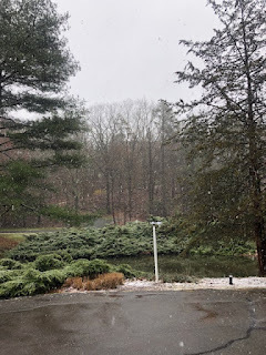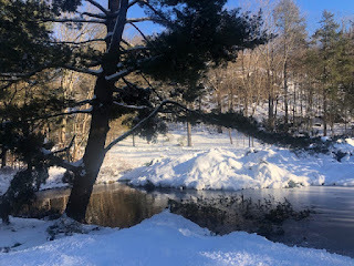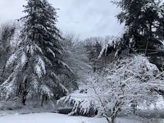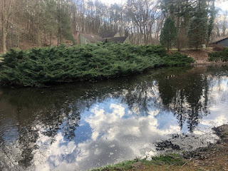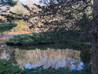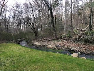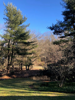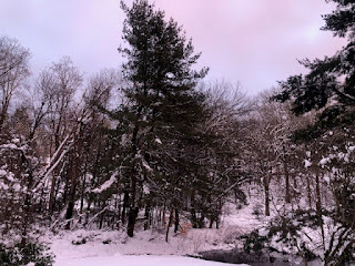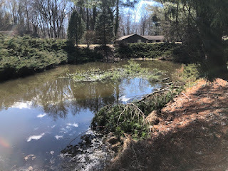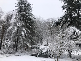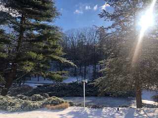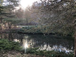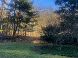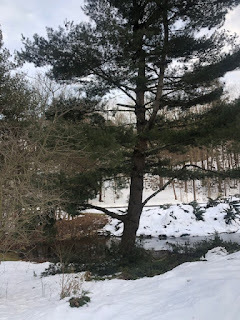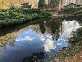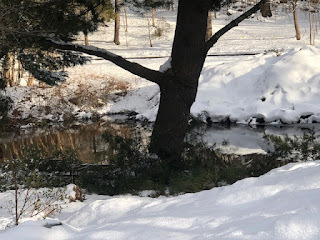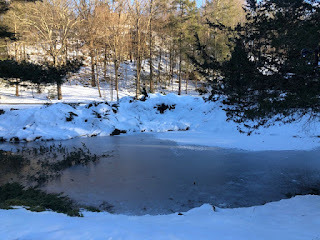 I am trying to meet my goal of doing my Views From the Pond posts every two months. But, alas, here we are with three months of pictures. January came in with some snow and the temperatures went down for a bit. We had one weekend that was in the single digits. Brrr! The snow was VERY wet and heavy. Still we were lucky and got to enjoy many snow free days and some nicer than usual temperatures. After all the rain we received in December (15 inches)- we were surprised to get another 12 inches throughout the month. It was wet! The pond was full and the brook was babbling!