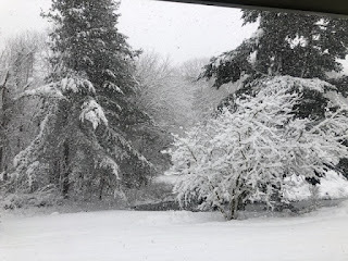 A beautiful snowstorm, but the snow was SO heavy it weighed down the branch so that it brushed the ground.