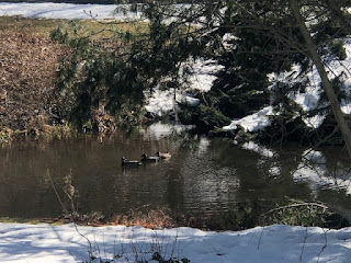 Lord and Lady Quackerly are back with a friend. The first time I saw them was 2/7, but I have been lucky enough to see them almost every morning before I leave for work. I get to watch them for much longer on the weekends. They are so cute swimming around. March 2024