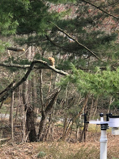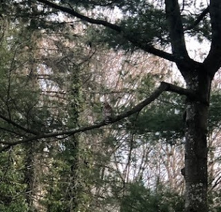 Can you spot the hawk in the tree? It landed on the branch after silently swooping just over our heads! It was quite the surprise!
