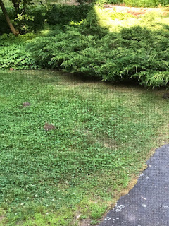We hav 5 baby bunnies and they hop around and play with each other. If I try to go outside to take a picture they hop to safety. So- this was through the window.