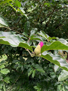 If you look closely you can see the magnolia has blooms. It likes to bloom on and off from spring until mid fall. Beautiful flowers!