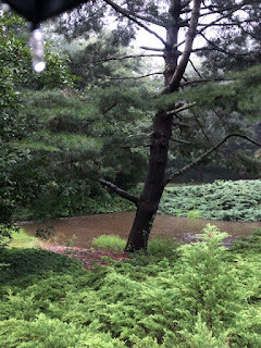We had a hot summer here, but we also had a lot of rain. In August we had a "once in a thousand year" rain storm where it rained over 6 inches in a few hours, and although we were lucky not to have flooding at our house, the pond and brook were FULL! Towns a half an hour away had closer to 13 inches of rain and there was severe flood damage to buildings, homes, roads, and bridges. Cars were trapped in flooding and people needed to be rescued, and houses were washed away. Scary and sad for everyone impacted by the flood damage, and it made the rain we got here seem like nothing.