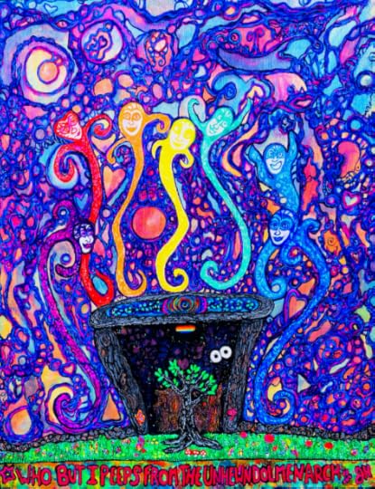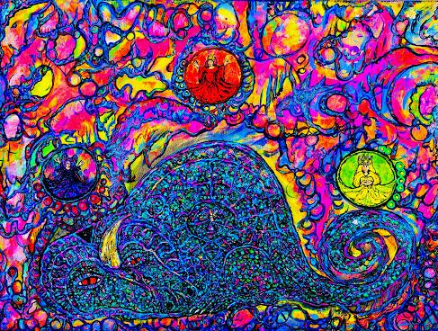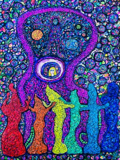 "Seven Royal Colors Play Rainbow Ride" Who but I peeps from the unhewn dolmen arch? (excerpt taken from a translation of the ancient poem, Amergin in The White Goddess by Robert Graves)Hello, Readers! Sometimes stories are channeled through art. My mind tends to travel down random conceptual tangents that wind up linking different ideas together. Skipping around on the creative path, no matter where it leads, permits me to follow along and let creative spirit show the way.