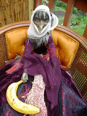 "Hello, Dearies. Did you know that if you eat a banana before noon it's like gold, and if you eat it before two it's like silver, after that it has no power. Want more tidbits of magic? Follow Eldrich to the Faerie Market