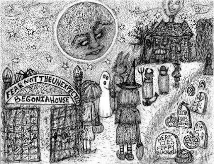 "Well hello fleshy humans! Welcome to October on Fairday's Blog. As per tradition, I'll be rattling my bones around the Begonia House, telling you chilling stories and keeping your hairs on end. It's frightfully delightful to entertain the spirits, and there's plenty of scares and sweets going around. Keep your head on straight and follow your goopy heart, make no bones about it!"