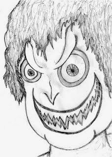 Shifting from one foot to the other, Macy stared down the school driveway. All the buses had left; everyone was gone. Georgie was late. She had tried to call him on her cell phone, but there was no answer. Her mom was at work, but Macy knew interrupting her would guarantee a whole evening of arguing. Slipping the phone into her back pocket, she decided to walk home. As the pavement twisted and turned she found herself thinking about Ferry Blackwell again. Last week she had started reading a book about the history of her town, Devilsville. It hadn’t been very interesting, except for one phrase, which was handwritten on page thirty-three. It said: In the woods of Devilsville, you’re sure to find a gory thrill. When the bakerman wants to eat, hide your hands and cover your feet. With a head melon-sized and fire burning in his eyes, he’ll harvest your fingers and your toes, then hide the rest so no one knows. Murdered by an angry town, he swore revenge when they shot him down. So watch your children, but never tell- if Ferry Blackwell comes back from hell. Macy knew the words by heart. She had looked through a few other books, but found nothing else about Ferry Blackwell. Then, the other day, she saw him. There had been an odd rustling behind the bushes in her backyard, and when she went over to investigate, someone was there. It looked like a man, but with a huge head. He had flashed a mad, toothy grin at her, and then disappeared. Her mother had come running out when she heard Macy’s rants of terror. “Macy! What did I tell you about scaring people with your stories?” her mother had yelled. Macy knew that no one was ever going to believe her, and why should they? After all, she did have a long history of making things up, which had opened more than one can of worms for her parents to deal with. Things like, Ginny Wader, in the third grade, refusing to touch door handles ever again or Georgie wearing a helmet wherever he went for a year. The list was long, she mused. Her thoughts were suddenly cut short. Just ahead, at the bottom of the hill, a school bus was stopped in the middle of the road. Macy cautiously walked up to it and climbed the steps. Other than the backpacks strewn about on the seats it appeared empty.“Hello?” she asked quietly. “Is anyone here?” Macy slowly made her way down the aisle. Midway, something caught her eye and when she turned to get a closer look, her mouth dropped open in horror. On the seat to her left was a bloody pile of shoes and socks, and what looked like fingernails tossed into the gruesome heap.BANG! Something hit the side of the bus. “What was that?” she whispered. BANG! Again, the bus shook and teetered. Macy reacted fast. She ran up the aisle and grabbed the door handle. Just as it was about to latch, long fingers pried it back open. Two red, veined eyes zeroed in on their target. Terror forced the air out of her lungs, and she screamed.