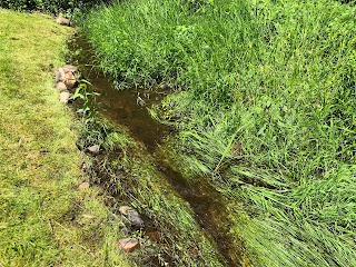 (New grass growing in where we finally finished a project we started in May! We made the space to walk to the pond wider- and it was a lot of work, but well worth it!)