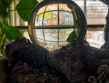 Found this magical crystal ball amethyst treasure at The Ruby Tree in Woodbury, CT (a good reason to shop at local eclectic shops, that's where you find these stunning, unique artworks. This one was waiting for me.)