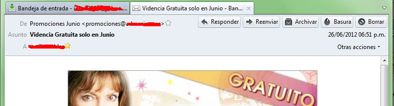 Con el título de "Promociones junio" me acaba de llegar por email este simpático SPAM de una vidente