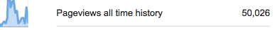 Welp, it ain't all that much. Not in this viral social media world, but the blog has reached 50,000 page views! Thanks to all for reading. Enjoyed it? Share it via email, facebook, twitter, or one of the buttons below (or through some other method you prefer). Thank you! As always, here's the tip jar. Throw some change in there & help cover the costs of running this thing. You can use paypal or a credit card.