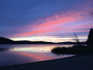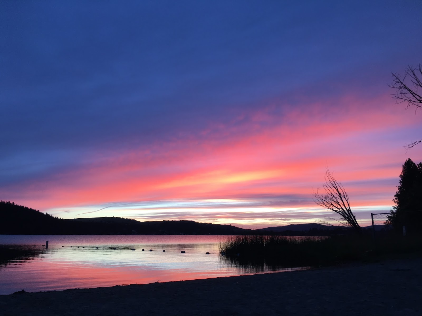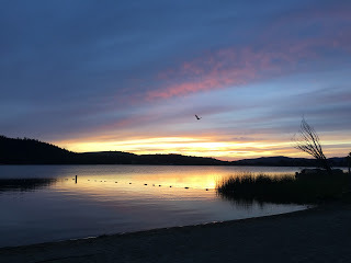 It was after a short but enjoyable hike that we caught this sunset at the edge of Liberty Lake here in Spokane, WA. This idyllic scene was captured: swallows and seagulls in the air, a deer jumping out of the reeds, and that summer chill just settling in.