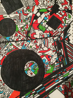 See, she told me about one painting, where, after a police shooting, the artist cut the newspaper clippings, then the printed out statements of almost every internet comment on the incident and pasted it onto this large (20'x20') canvas to serve as the background. Then, after drawing lines to connect some of the words and similar sentiments, the artist then filled in the sections (from the lines) with different shapes. The kind of shape, the color and the number of them all came down to statistics the artist found about the incident (from total shootings like this one, to the number of the said gun in the world etc etc). Even placement of said symbol was considered only after a statistic was informed.