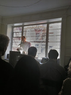 Well yesterday's Veterans reading was great. Lots of people showed up and there were many good stories and memoirs read. Here's a picture from the event, and I'll post more (of the other readers too) as I get them.
