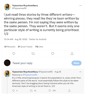 To that end, there was this piece on twitter lamenting (as I do, though now I wonder if my style reeks of this sameness) how al the pieces read the same. Like same voice etc. And tbf, blaming MFAs and their outsized influence is certainly valid. Hell I do it all the time.
