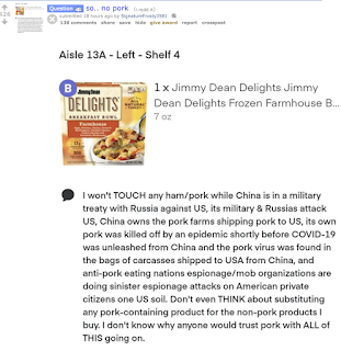 Two screenshots. One of a goat saving a chicken from a hawk (yeah, that happens, in fact another chicken chose to also join the fight before the goat. 🐐). Then a scree about Chinese pork in an instacart order. So it goes. The rants will continue so long as just typing them is easy.