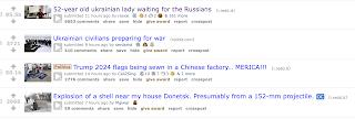 Interesting, though I do wonder when that spike happens. Is it 2020? Before that? Could be 2017 for all I know from that. So Ukraine. Looks like it's out there, plenty of manufacturing consent going on. I know I wrote about this a year ago. Adding to this I've listened to this podcast. it's worth listening to. Think it brings up lots of good things that aren't usually brought up in this discussion (or scream session, online). It does seem to underplay the strength of the Nazi-adjacent movements in Ukraine (and at the start of the protests in 2014, there was certainly far right, fascistic elements involved, though I agree to say it was all fascists, or that it was all American led, is going a little too far[1] and indeed the current Ukrainian president is Jewish, so that seems to point away from the fact that what remains of Ukraine is itself a wholly right wing state).