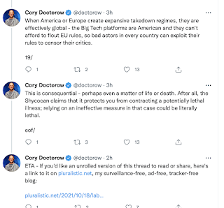 Read the whole thing, it's pretty good. There are simple copyright thieves who then use the tech companies bare bones report mechanisms to silence their critics. But this method is also