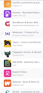 Highest Grossing Book AppsBut what about the other markets of webnovels and what have you? Once again, there is little being done to actually see what all these apps are bringing in and comparing that to what the novel/ebook world looks like. Even if we're to look away from these other forms of writing (also a continuous stream of chapters, always hooking the reader, and many times with erotica as a selling point), the article at no point gives numbers for how much of the market Amazon now accounts for (and how much of, say, ebooks sold by them are from publishing houses, so the profits are split... etc etc).