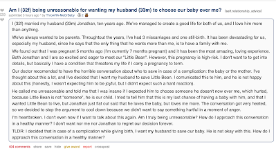 And here's a damn sad situation. Well, damn, it's certainly something I thought about when we had our son, though luckily we were not high risk. Answers to this one, are mostly on point. It's just one of those life situations where either way you lose. But one hope they make it through no hard choices to make.
