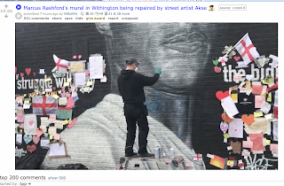 Ah well. And in the end, pens are more luck than anything. But apparently those who missed them are getting racial hate. Uncalled for. But the fight back against the reactionaries has been stronger as the picture above attests to (a mural for Rashford which was destroyed and now redone).