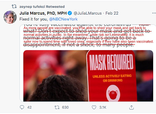 Also if you're vaccinated against Covid you should be getting back to normal because you are safer now. All other pearl clutching to the contrary is some dumb shit.