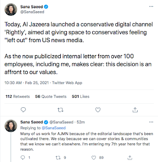 Edit: Also thinking about AlJazeera starting a right wing channel? Well here are some thoughtful words on it: