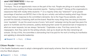 Hugo House should try to be more inclusive. But read the comments. Wow oh wow if people in this city don't get it, there's proof of it. I actually don't know much about what's going on there (first time I've heard it), but it seems like a problem (I have had the luck to work with 2 of the people who signed on to that letter and they are brilliant beyond belief) and especially if the people who signed that letter state that it is. I will say this about the opponents of "cancel culture" (assuming they can even define it), they are fine with the quiet kinds that led to this outcry. Pretty sad that they see things this way.