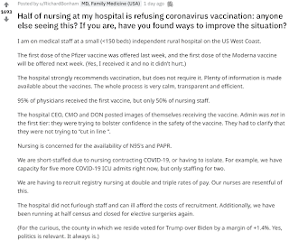 Take, for example, this case about how many nurses, college educated etc, are refusing the vaccine.