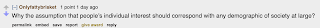 I suppose some of these are people (kids mainly, on reddit) being uncomfortable about their own success or perceived success will fight with the same old arguments. I also suppose that many are young and simply don't know the history (many aren't activists, right?). Shame.