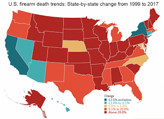 I'm not exactly sure what to say about this. Even this map (which shows that the only decreases in firearm deaths from 1999-2017 was in California (and Nevada, though), New Mexico and NY.