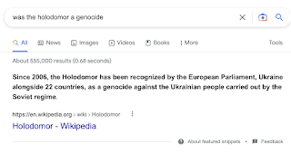 But it goes to show how the narrative is shaped. Look at the Holodomor and how the first google result is: