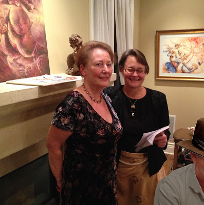 Uvi and DebDeb is holding my poetry book, Home, which she got from Don as a birthday gift.(Behind us, over the mantel, is my oil painting that became the cover for the book.)